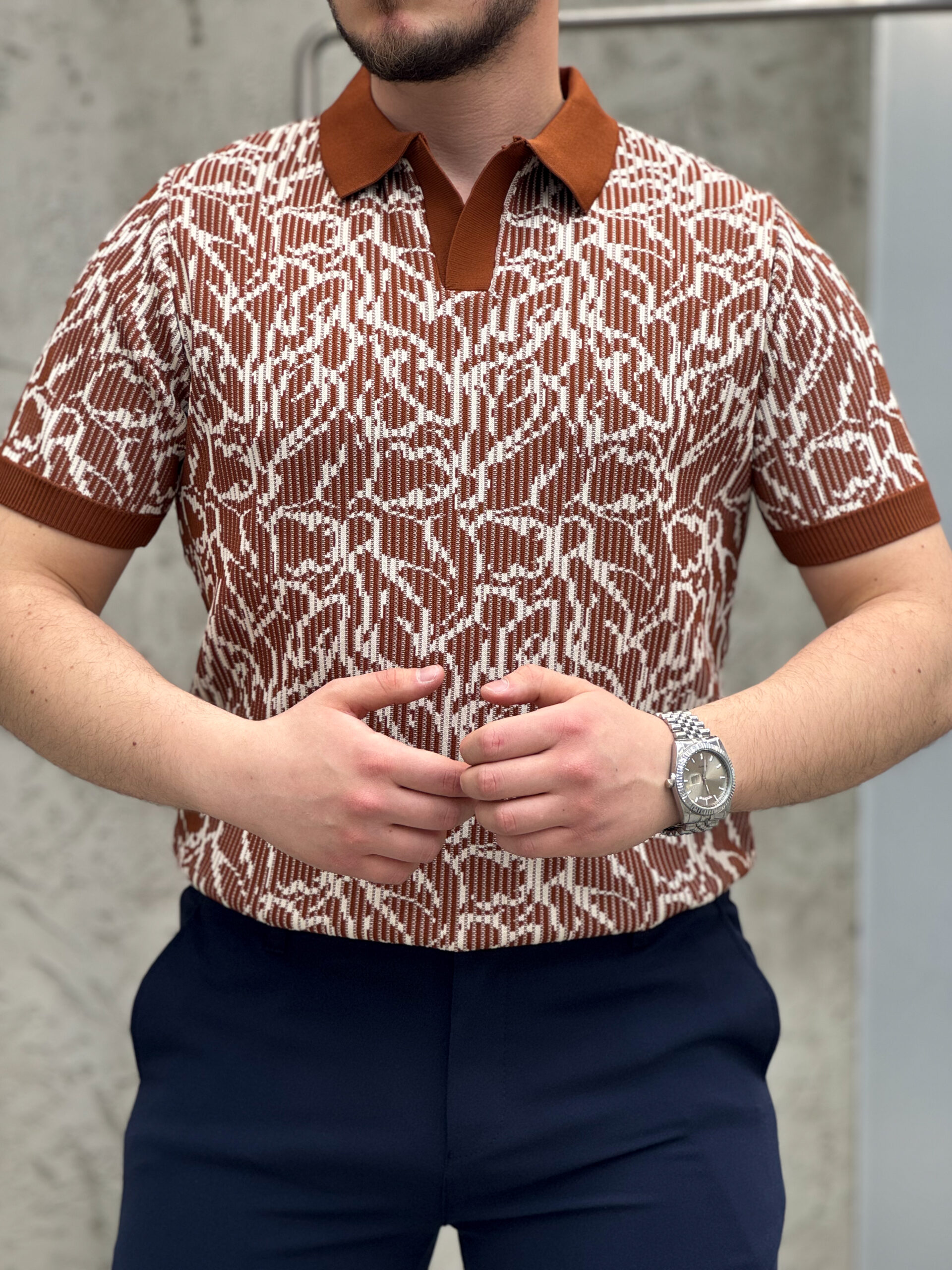 PREMIUM Kalite Tasarım Desenli Pamuklu Polo Yaka